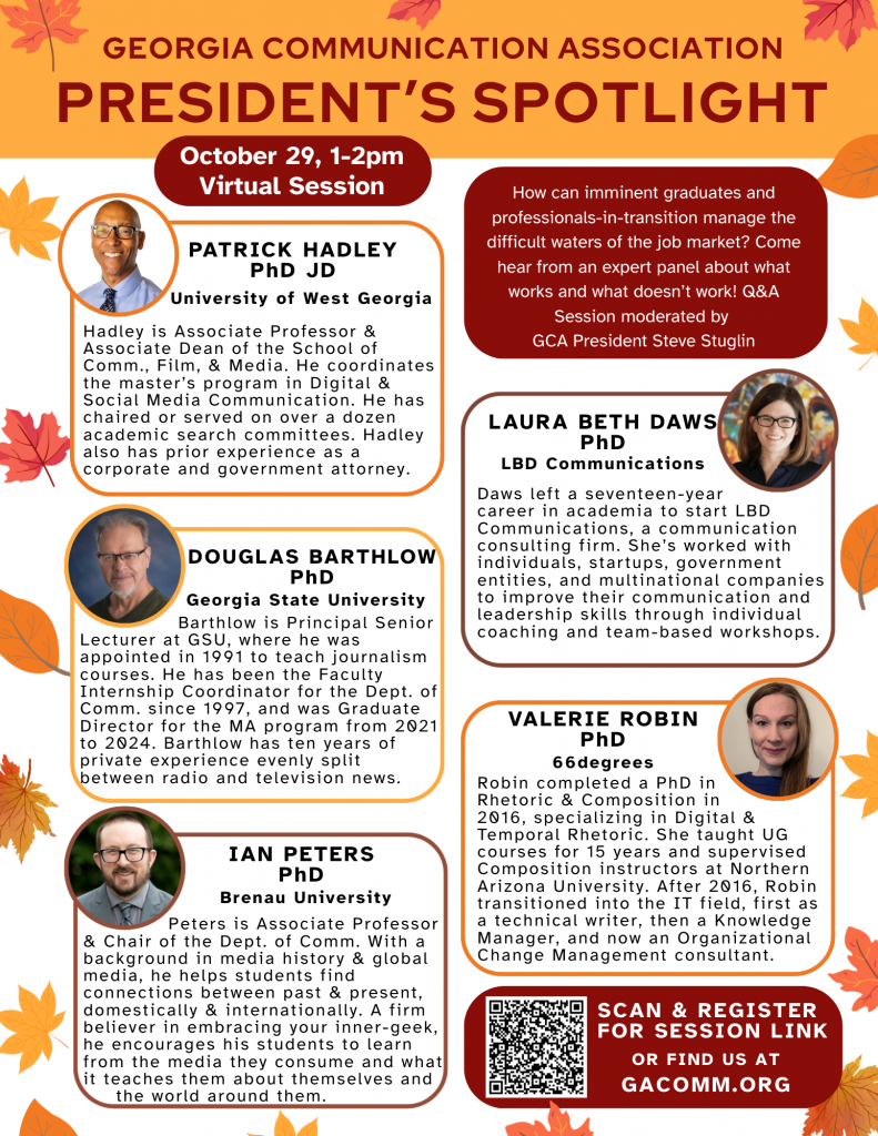 Also, please mark your calendars for our annual conference, set for February 26-28, 2026 at Mercer University in Macon, Georgia. Our Call for Submissions has been posted to gacomm.org .